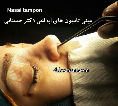 در صورت لزوم، برای جلوگیری از خونریزی و تثبیت دیواره داخلی بینی، از تامپون یا گاز استریل استفاده میشود. این تامپونها معمولاً طی چند روز پس از جراحی برداشته میشوند. تامپون داخلی معمولاً از جنس گاز استریل یا اسفنج نرم است که داخل سوراخهای بینی قرار داده میشود. - اسپلینت داخلی: